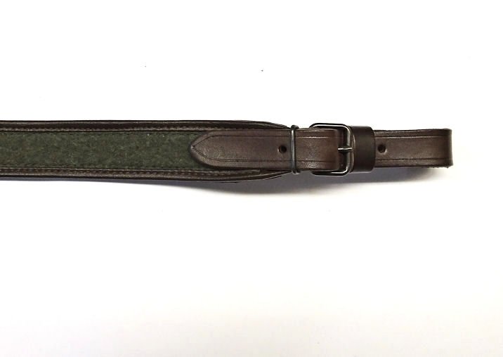 Řemen na pušku v textilním provedení z lodenu, obšitý kůží, podšitý gumou, šířka 3 cm