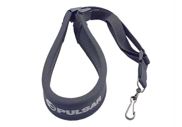 Řemínek na krk s karabinou pro přípevnění přístrojů Axion, Helion. K připevnění přístroje na karabinu se využívá popruh na ruku.