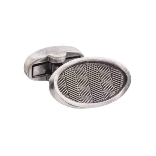 Retro oválné manžetové knoflíčky ve starožitné kovové úpravě se vzorem rybí kosti v luxusní dárkové krabičce J.L.TOMAN.