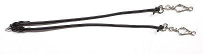 délka cca 45cm,ukončeno  klešťovými karabina,průměr kůže 6 mm,