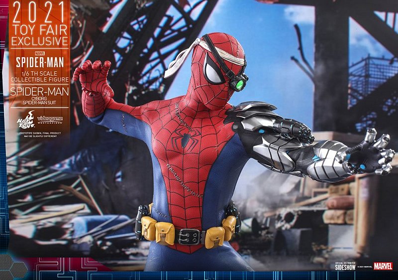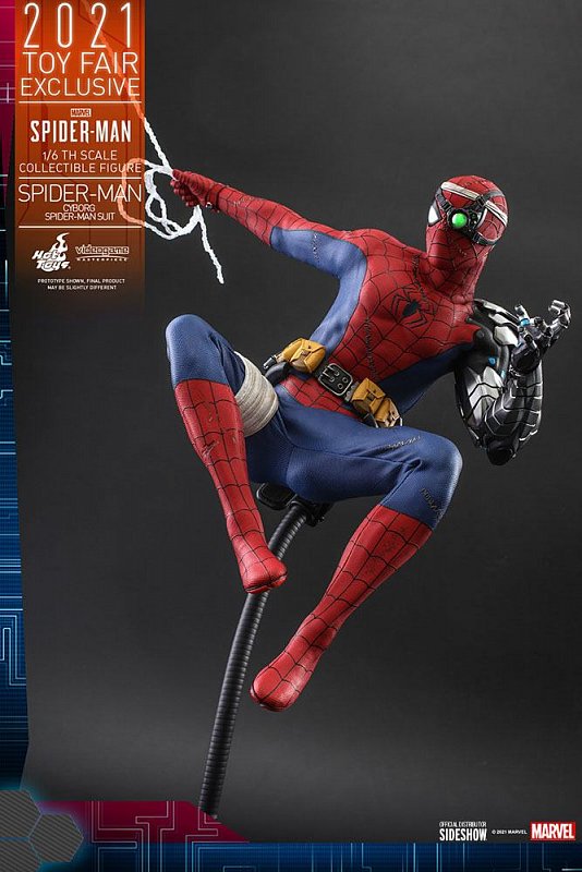 To further expand Marvel\'s Spider-Man collectible series, Sideshow and Hot Toys are delighted to introduce the sixth scale Spider-Man (Cyborg Spider-Man Suit) collectible figure capturing one of the signature looks of the wall-crawling hero. This amazing figure is a Toy Fair Exclusive item!