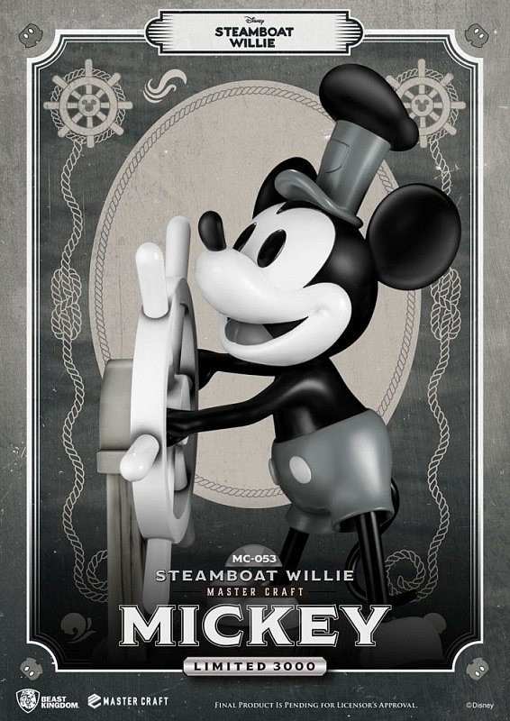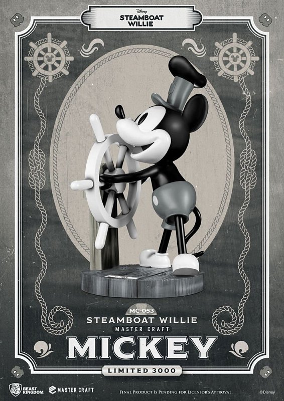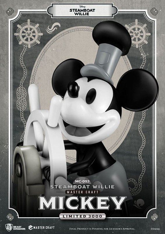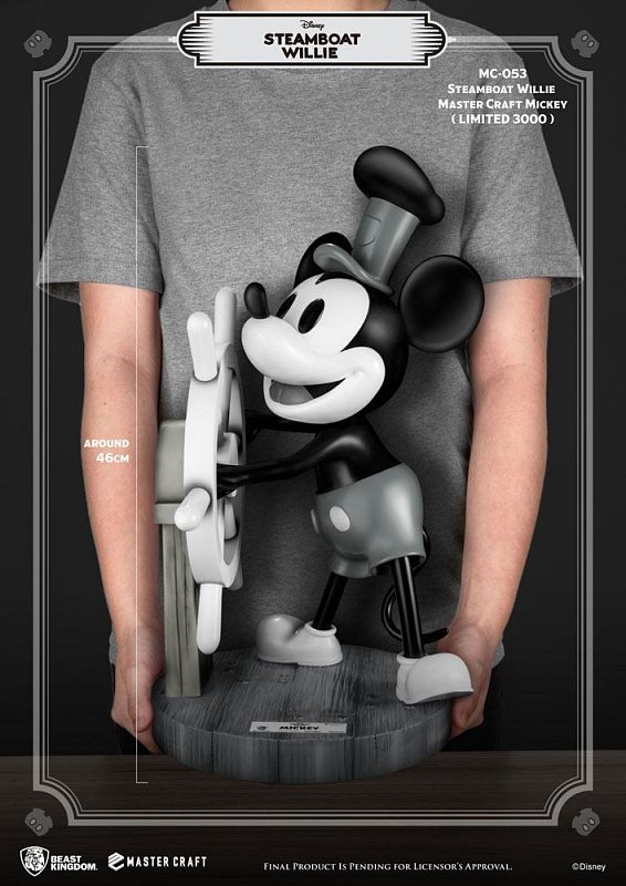 Disney\'s classic 1928 black-and-white animation \'Steamboat Willie\' was the introduction and launch of arguably the most famous animated character in history. Mickey Mouse has become a household name the world over and is now ready to bring some of that retro magic to fans with the release of a highly collectable Master Craft from Beast Kingdom\'s \'Entertainment Experience Brand\'.