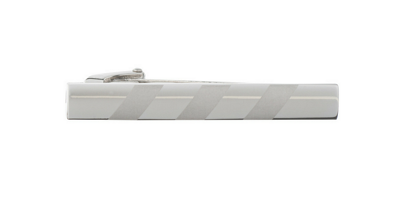 Stříbrná spona na kravatu s gravírovanými pruhy v délce 35mm v luxusní dárkové krabičce.