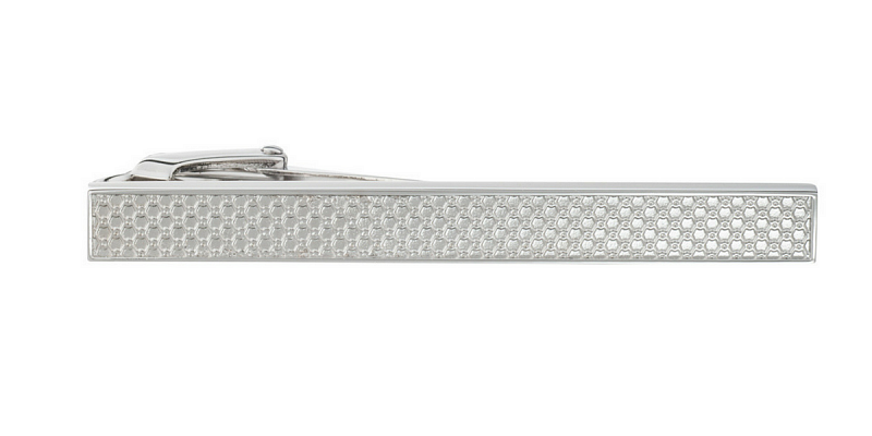 Stříbrná spona na kravatu s industriálním vzorem v délce 55 mm