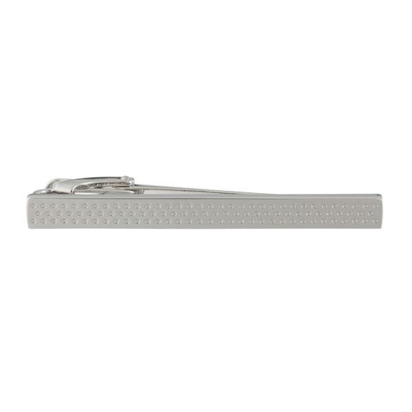Stříbrná spona na kravatu s puntíky v luxusní dárkové krabičce.