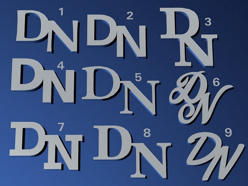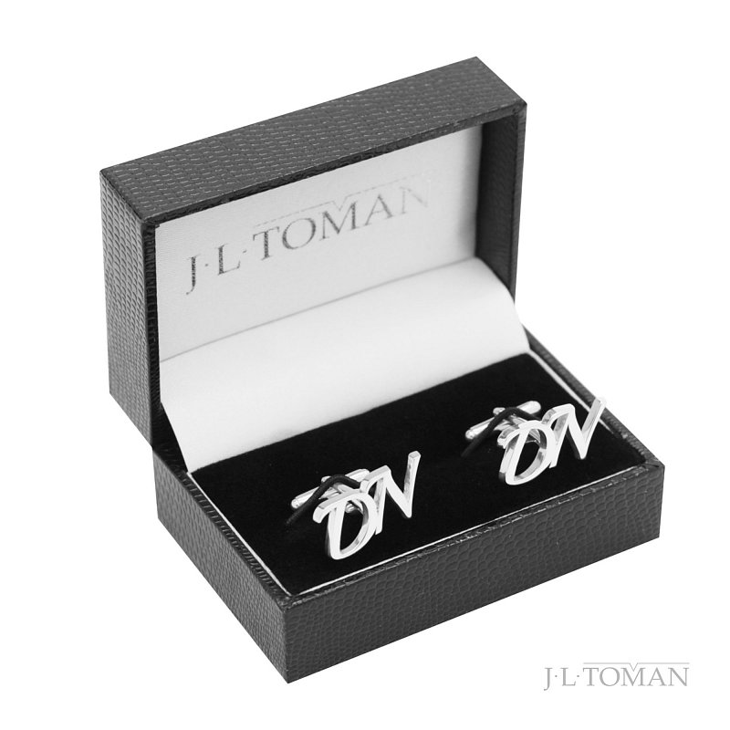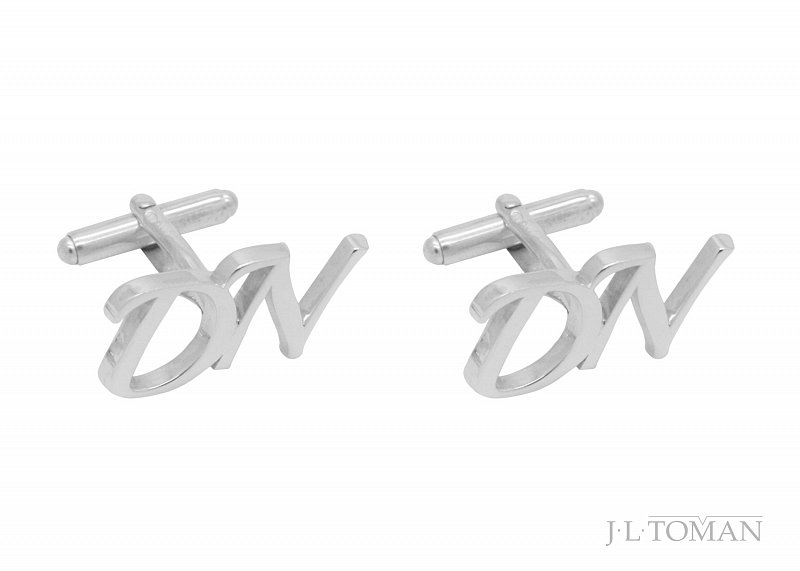 Stříbrné manžetové knoflíčky s monogramem DN č. 13 vyrobené na zakázku podle grafického návrhu