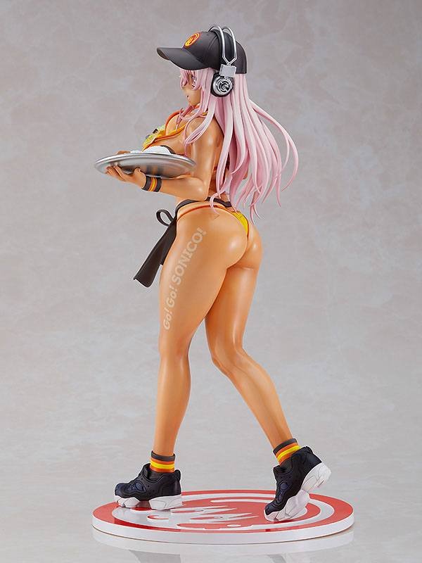 Presenting a scale figure of Super Sonico in a sexy bikini waitress outfit! The 1/6th scale figure is based on an original illustration by Tsuji Santa. Sonico has been recreated carrying giant plates of curry in both hands. The figure features plenty of dynamic sculptwork and carefully painted tan lines, making for a figure with plenty of detail from head to toe. Be sure to add her to your collection!