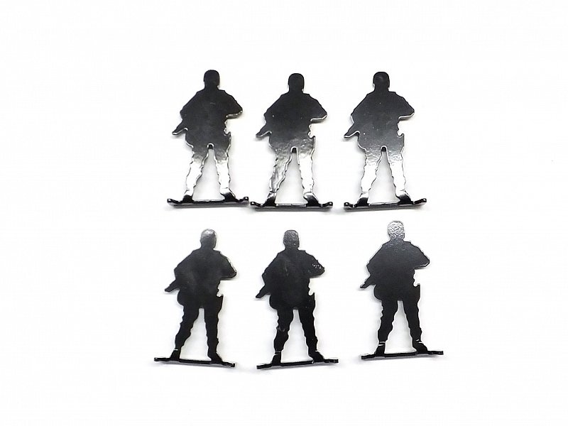 Raven Army 6, sada šesti kovových vojáků černé barvy, použitelné jako cíle pro střelbu, vyrobeno z kovu o tloušťce 3mm.