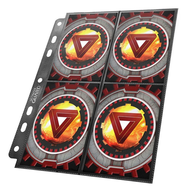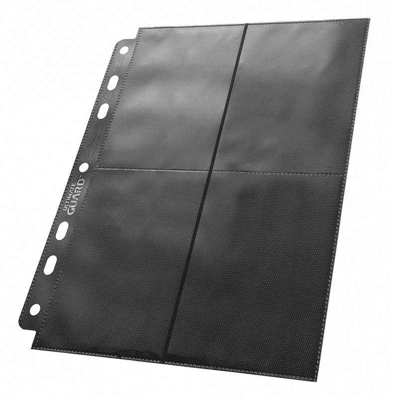 High-quality, double-sided pocket pages (8 pockets, 4 pockets each on front and back side), that fit in almost any compact-sized D-Ring Binder, thanks to the double reinforced 7-hole strip. Each pack contains 10 pages for storing and carrying at least 80 double-sleeved, standard-sized cards (8 per page).\n\n- Side-loading Design\n- Double reinforced 7-hole strip\n- Extra durable base material with semi-transparent middle layer \n- 10 pages holding at least 80 double-sleeved cards\n- 4-Pocket Pages with double page design\n- Fit in almost any compact-sized D-Ring Binder\n- Extra high clearness of the protective foil\n- Acid free, no PVC\n- Page size: approx. 200 x 164 mm\n\nIdeal for the Ultimate Guard Supreme Collector\'s Compact Album XenoSkin.