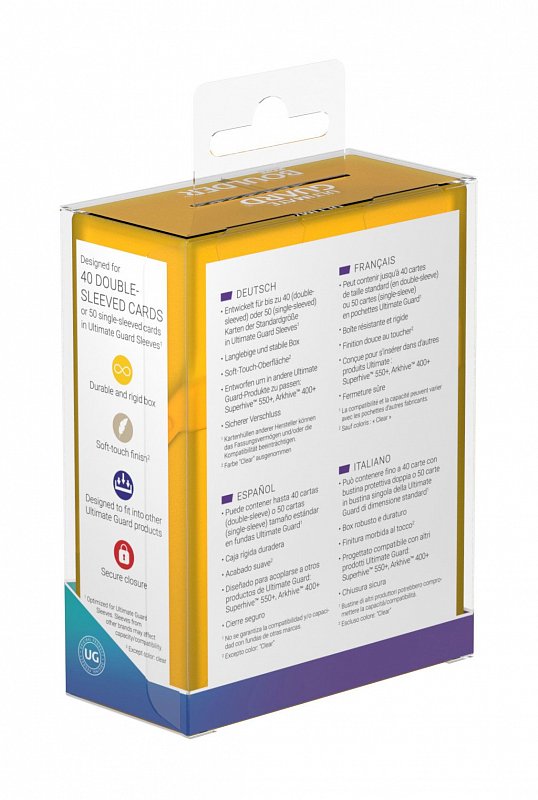 - Designed for 40 double-sleeved or 50 single-sleeved standard sized cards in Ultimate Guard Sleeves
