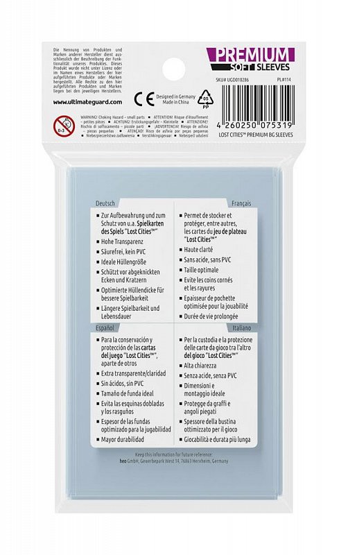 Ultimate Guard Premium Soft Sleeves for Board Game Cards Lost Cities™ (60)
