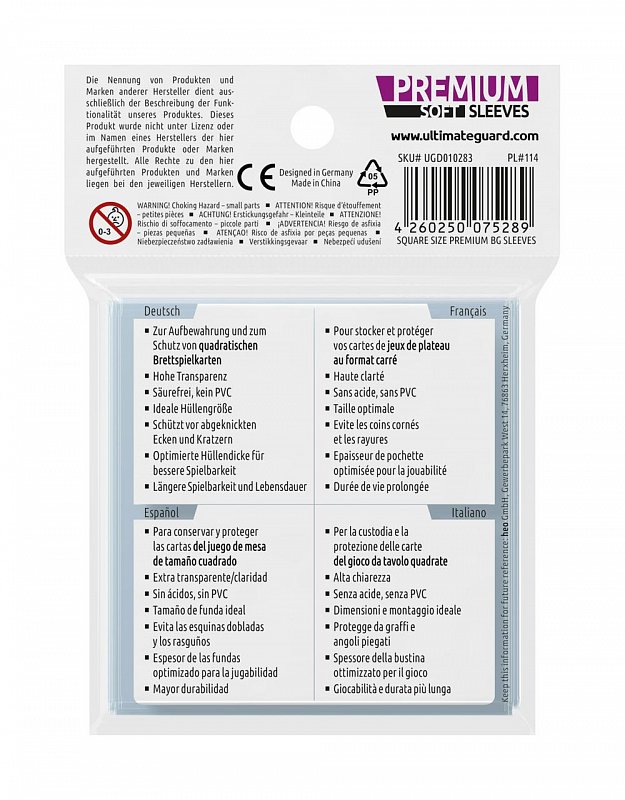 Ultimate Guard Premium Soft Sleeves for Board Game Cards Square (50)