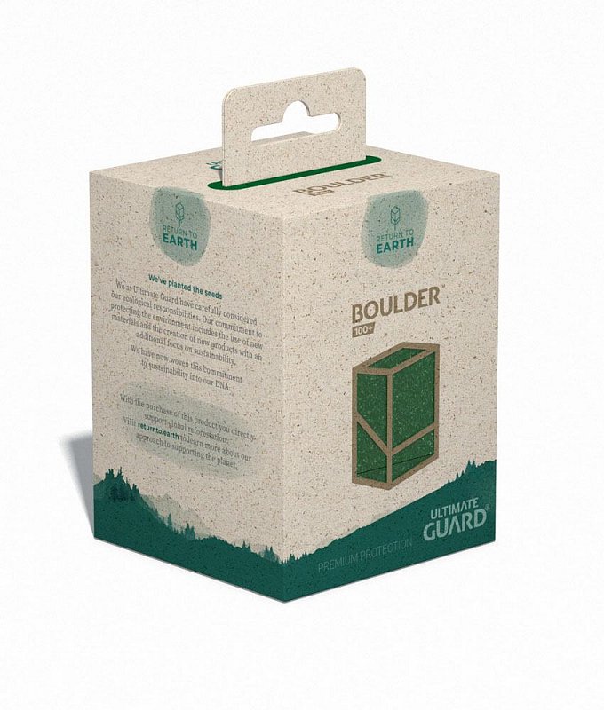 Developed and produced in Germany, this handy and solid Boulder 100+ with super-easy opening consists of 97% renewable resources, with a FSC certified grass paper packaging. The deck case is recyclable and holds up to 100 double-sleeved or 120 single-sleeved cards when using Ultimate Guard Sleeves.