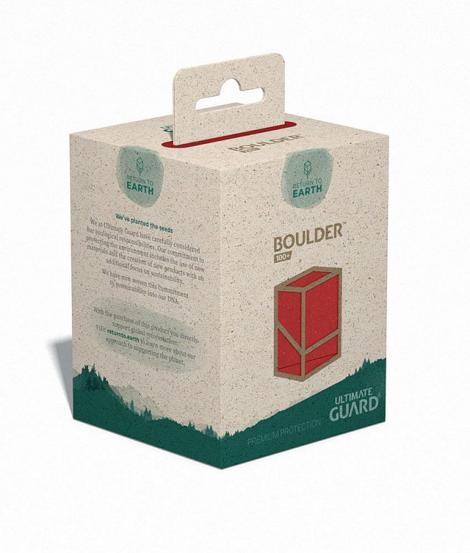 Developed and produced in Germany, this handy and solid Boulder 100+ with super-easy opening consists of 97% renewable resources, with a FSC certified grass paper packaging. The deck case is recyclable and holds up to 100 double-sleeved or 120 single-sleeved cards when using Ultimate Guard Sleeves.