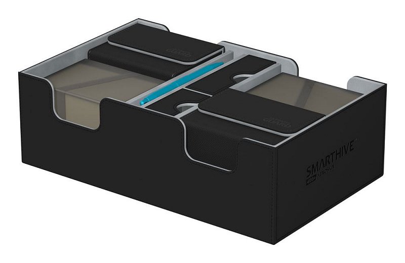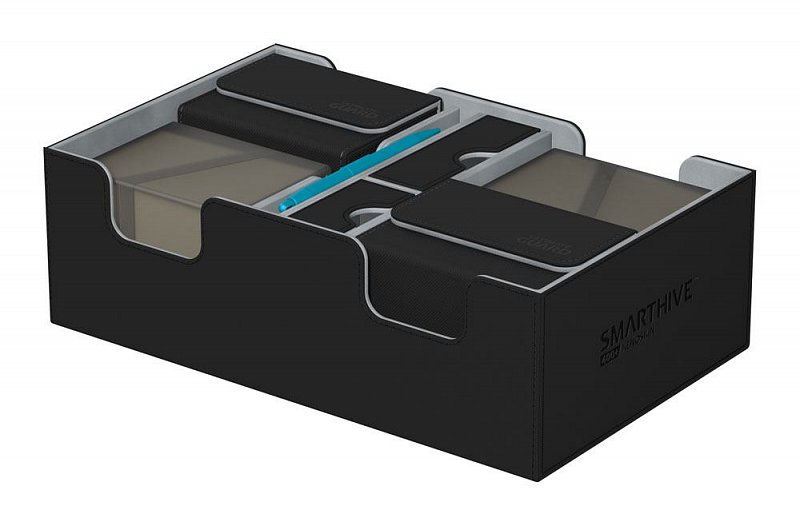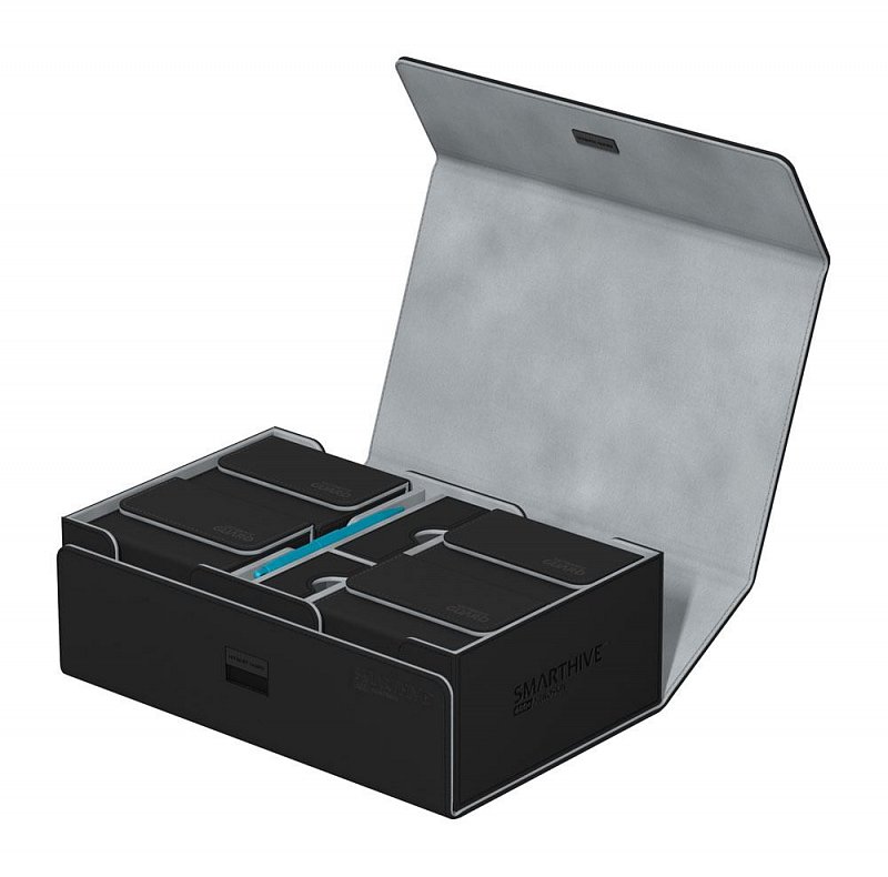 Das Smarthive 400+ ist eine intelligente Deckbox, die alle Anforderungen der modernen Kartenspiel-Welt erfüllt. Sie bietet nicht nur Platz für mehrere Kartendecks und Zubehör (es gibt sogar ein Fach für das Lifepad 5\"), der abnehmbare Deckel kann außerdem als Spielmatte benutzt werden, die besonders weiche Microfaser-Innenseite der Box dient dabei als Spielfläche. Der neu entwickelte, besonders starke Magnetverschluss \"ZnapClaw\" hält die Box jederzeit sicher geschlossen.