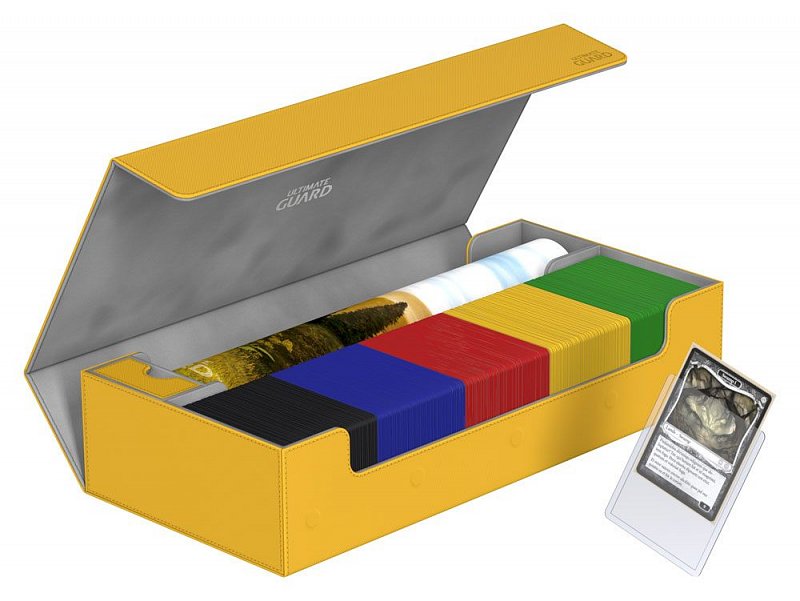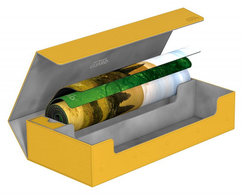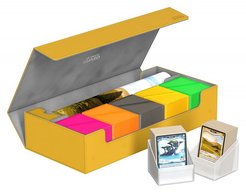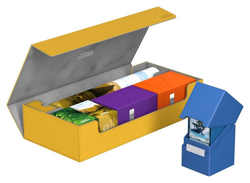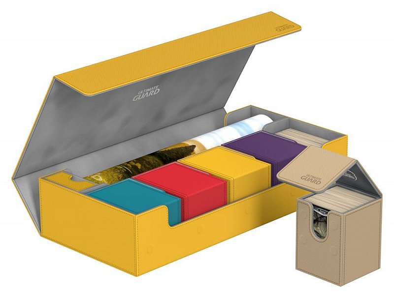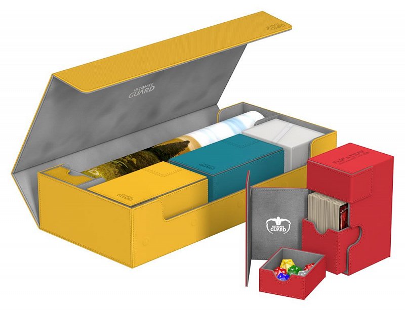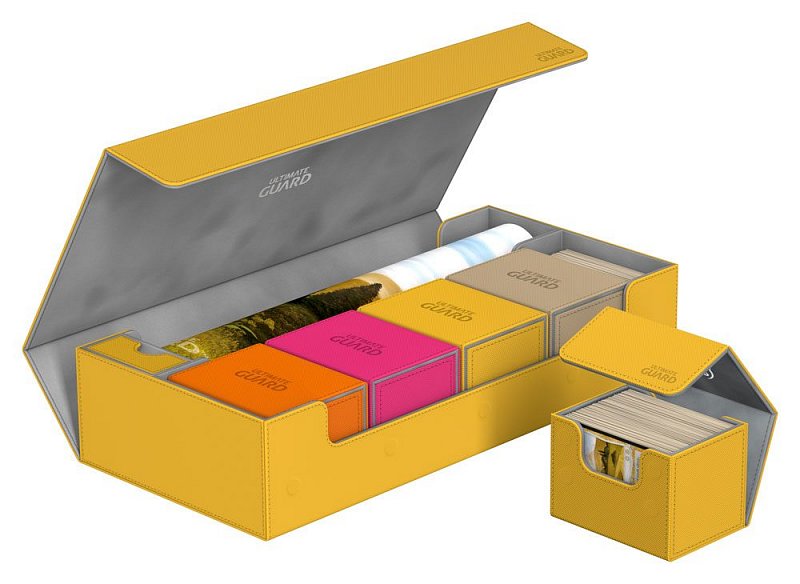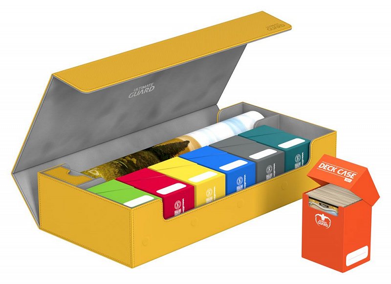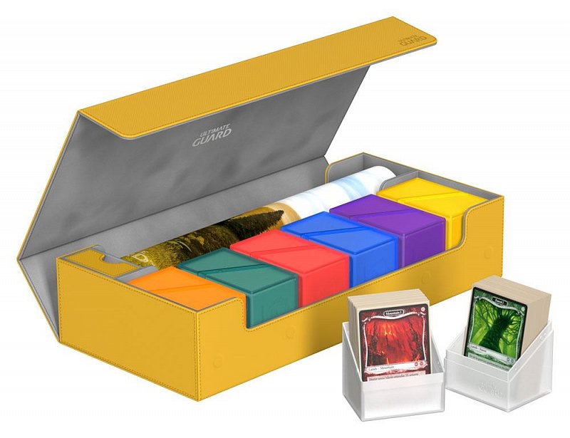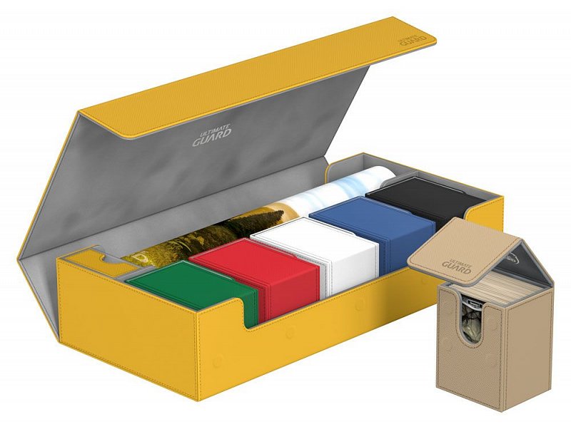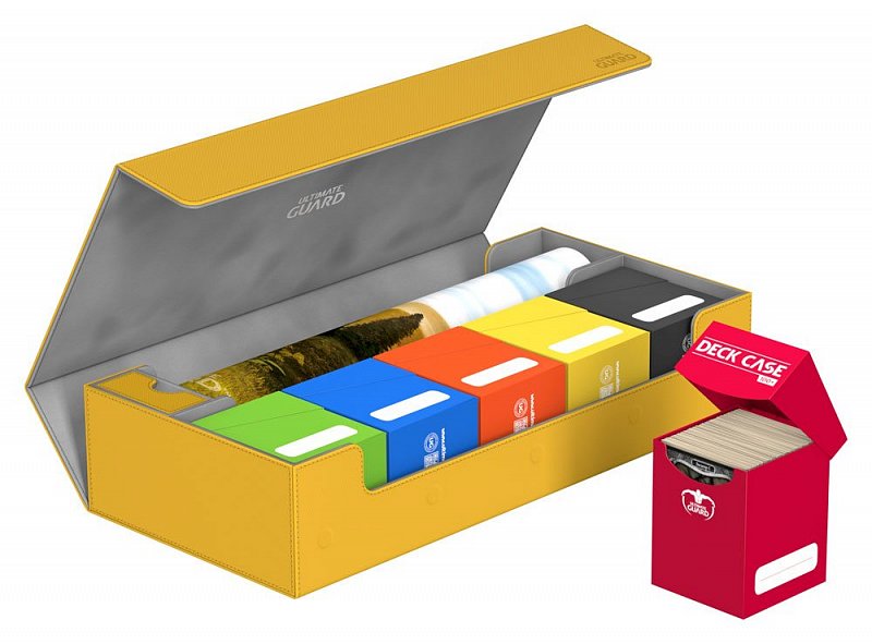 This ultimate box leaves nothing to be desired! There is space for everything you will need, with compartments for multiple card decks and cases, two play-mats and accessories like dice, tokens and life counters!\r\n\r\nHere are some examples of what this amazing box can hold:\r\n\r\n- 6 Deck Case 80+ (+ extra space)\r\n- 5 Deck Case 100+\r\n- 5 Sidewinder 80+\r\n- 4 Sidewinder 100+ (+ extra space)\r\n- 5 Flip Deck Case 80+\r\n- 4 Flip Deck Case 100+ (+ extra space)\r\n- 6 Boulder 80 (+ extra space)\r\n- 5 Boulder 100+\r\n- 2 Flip\'n\'Tray 80+ (+ extra space)\r\n- 550+ Double Sleeved Cards\r\n- 650+ Single-Sleeved Cards\r\n- 1100+ unsleeved cards\r\n- 230+ Top-Loaders\r\n- 2 Play-Mats\r\n- Dice Tray\r\n- 2 Monolith (+ extra space)\r\n\r\nProduct features:\r\n\r\n- Ideal for storing a great variety of Ultimate Guard products\r\n- Convenient multi-deck-carrying - Multiple deck cases can be carried together in one box\r\n- Optimized space for 2 play-mats\r\n- The compact design of the box surprises with a capacity of more than 550 double-sleeved cards\r\n- Magic the Gathering™ players will love to use this box at cube drafts\r\n- Innovative XenoSkin™ material with anti-slip texture\r\n- Premium microfibre inner lining\r\n- Super rigid double-layer skin for maximum protection\r\n- 5 magnets for a precise and secure closure\r\n- When fully opened, the 3-fold lid leaves the box open to both sides for extra easy access\r\n\r\nDimensions: 407 x 200 x 90 mm