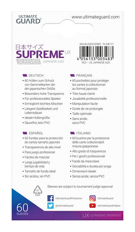 Ultimate Guard Supreme UX Sleeves Japanese Size Red (60)