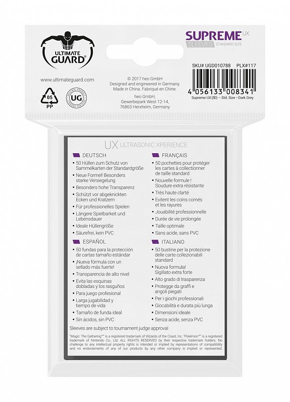 Ultimate Guard Supreme UX Sleeves Standard Size Dark Grey (50)