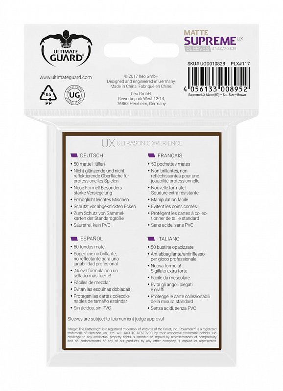 Ultimate Guard Supreme UX Sleeves Standard Size Matte Brown (50)