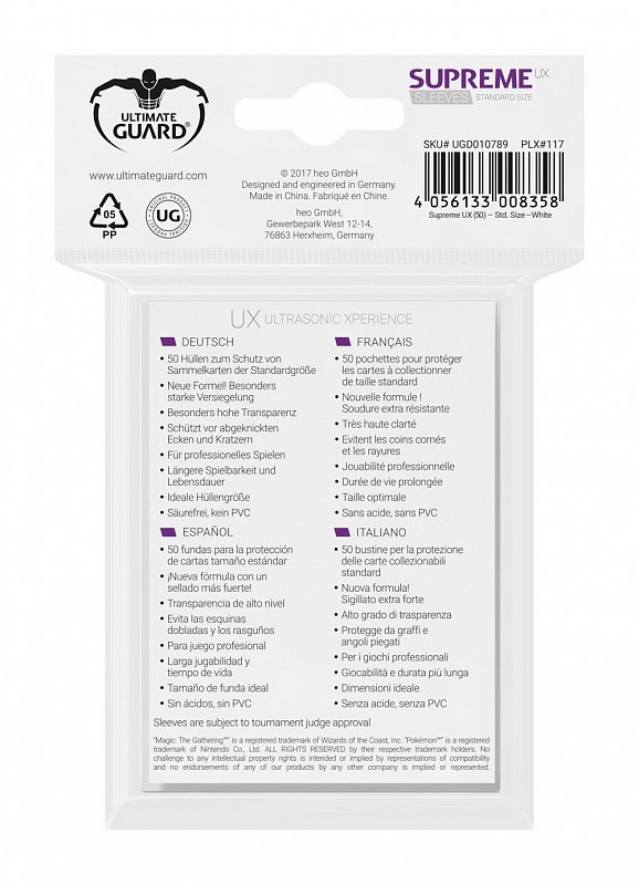 Ultimate Guard Supreme UX Sleeves Standard Size White (50)